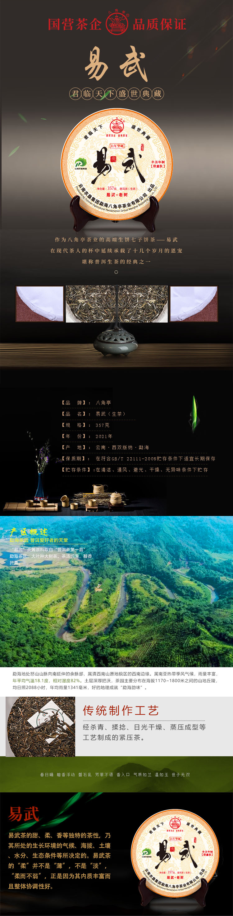 云南农垦集团勐海八角亭茶业有限公司(简称八角亭茶业,原黎明茶厂),坐落于普洱茶核心产区云南省西双版纳傣族自治州勐海县勐遮镇,隶属于云南省农垦集团有限公司。