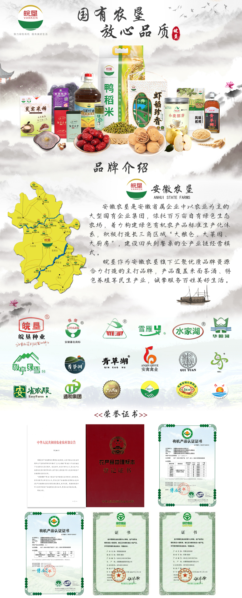 安徽省农垦集团有限公司是1998年经省政府批准由原省农垦农工商联合总公司(前身为省农垦厅)改制成立的国有独资公司,原由省委、省政府直接管理,2004年纳入省国资委监管序列,与安徽省农垦事业管理局系一个机构、两块牌子、一套班子,系经济建设与社会事业同步发展的综合性系统。省农垦集团是安徽省规模最大的国有现代农业企业,2012年末,资产总额近70亿(不含土地),下辖全资子公司42个,控股子公司36家,境外子公司1个;其中农、茶、果场20个,主要分布在皖南4个、沿江2个、沿淮及淮北14个,海外农场3个,土地面积7.5万亩;专业公司6个、建筑公司1个。垦区总人口12.2万人,其中,职工2.65万人,离退休3万人;拥有土地面积100万亩,其中,耕地45万亩,林地11.8万亩,茶果园7万亩,养殖水面1.5万亩??亚涤信┮悼蒲兴?5个,科技人员2300多人。